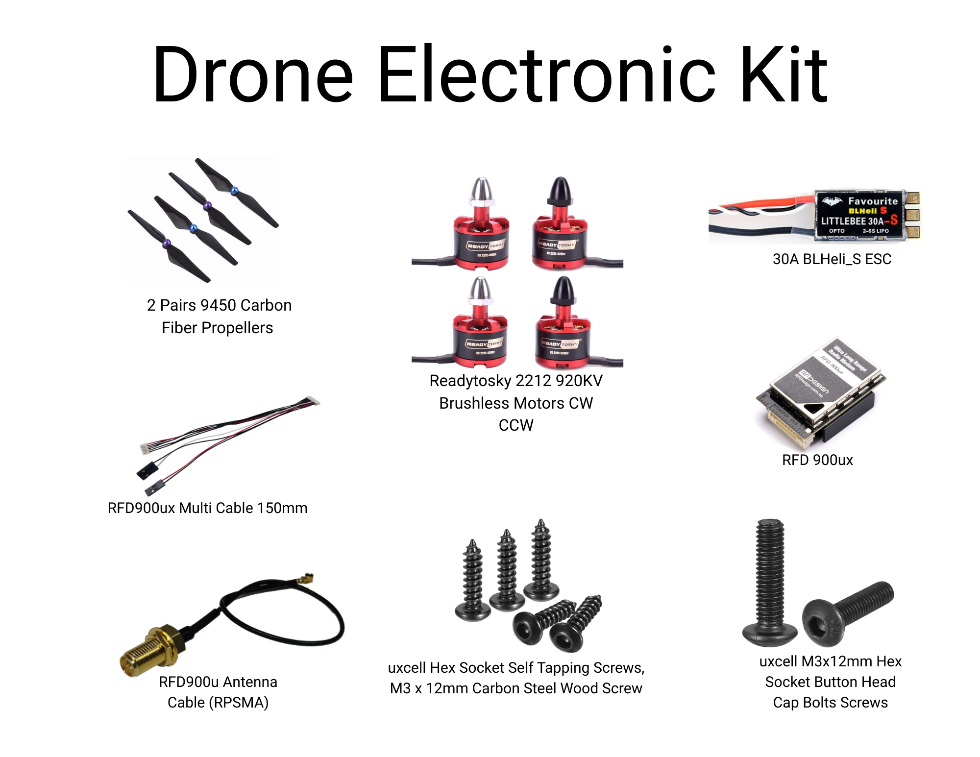 Readytosky 2212 920KV Brushless Motors (2CW + 2CCW) – Smooth, efficient, and powerful performance for stable flight.